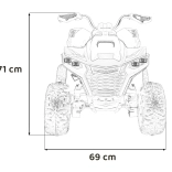 Dieses elektrische Quad wurde für Spaß und Sicherheit entwickelt. Der leistungsstarke 4×35 W Antrieb in Kombination mit sanftem Start und zweistufiger Geschwindigkeit bietet Sicherheit und Komfort beim Fahren. Dank der großen EVA-Räder (31 × 14 cm) und der doppelten, regulierbaren hinteren Stoßdämpfer meistert es auch unebenes Gelände.
