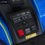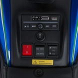 Das Multimedia-Panel mit Bluetooth, USB, MP3 und FM-Radio liefert Lieblingsmelodien und Hörspiele. Der Sitz aus Ökoleder mit Sicherheitsgurten hält das Kind bequem und sicher. Eltern behalten die Kontrolle dank der 2,4G-Fernbedienung mit 3 Geschwindigkeiten und der Sicherheitstaste Stop.