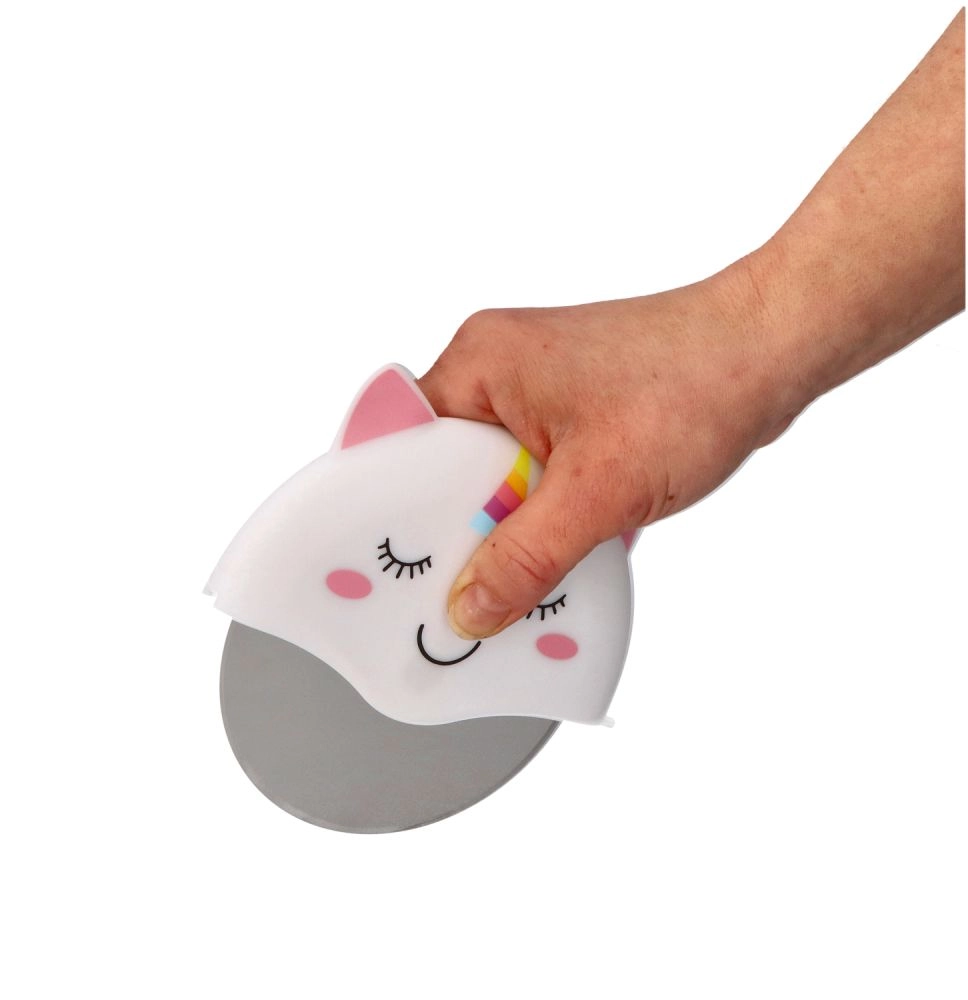 Dieser originelle Pizzaschneider begeistert Liebhaber von witzigen Küchenaccessoires. Das Edelstahlrad mit großem Durchmesser gleitet mühelos durch knusprige Kruste und Käse, während der stabile Griff aus robustem Kunststoff für einen sicheren Halt sorgt. Das niedliche Einhorn mit Regenbogenhorn verleiht Ihrem Tisch eine magische Note.