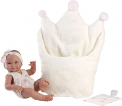 Die Puppe NEU GEBOREN Mädchen von der Marke Llorens ist die ideale Wahl für jeden, der ein hochwertiges und realistisches Spielzeug sucht. Sie wird mit großer Sorgfalt gefertigt, was in den einzelnen Details zu erkennen ist, die ein echtes Baby nachahmen. Dank des Vinylkörpers kann die Puppe gebadet werden; es ist nur darauf zu achten, dass die Wimpern nicht nass werden.