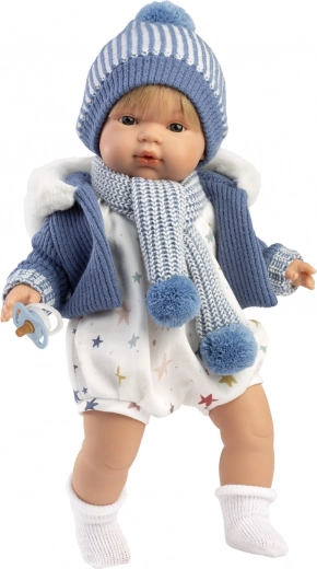 Diese sprechende und weinende Puppe ist mit Funktionen ausgestattet, die unmittelbar nach dem Entfernen der Sicherung aktiviert werden. Die Puppe hat einen weichen Stoffkörper, der angenehm zu berühren ist, und Haare am ganzen Kopf.