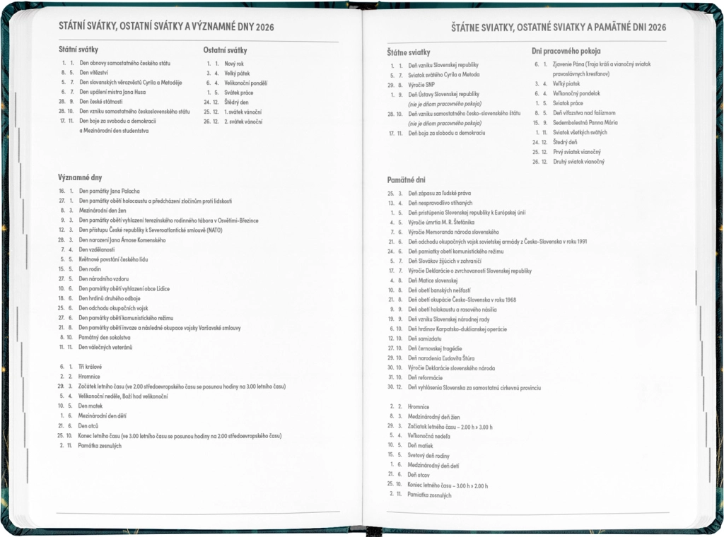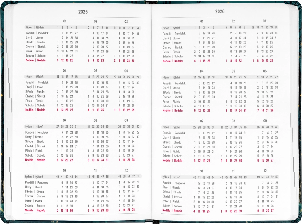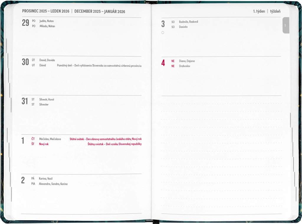 - Tschechisch-slowakisches Wochenkalendarium mit Namen und Feiertagen
