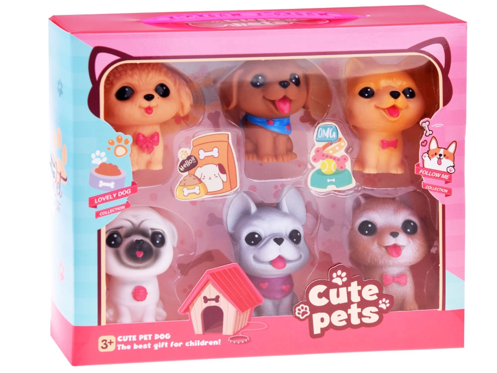Satz von Gummifiguren Hundewelpen 6 Stück