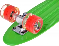 Die Rollen des Skateboards sind aus strapazierfähigem Material gefertigt und mit speziellem Gummi überzogen, was hervorragende Haftung und Vibrationsdämpfung bietet. Ein weiteres Highlight sind die integrierten LEDs, die beim Fahren leuchten und dem Skateboard ein außergewöhnliches Aussehen verleihen, zudem die Sichtbarkeit des Benutzers erhöhen - ganz ohne Batterien! Die LEDs werden durch die magnetische Energie betrieben, die durch das Drehen der Räder entsteht.