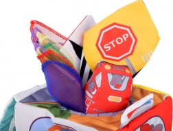 Textilautos, die sanfte Geräusche machen, stimulieren Gehör und Vorstellungskraft.