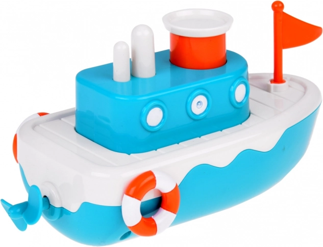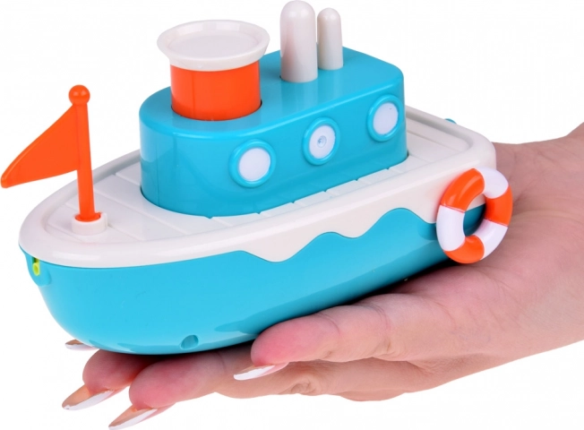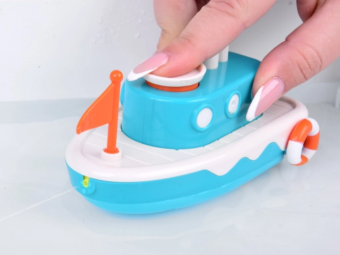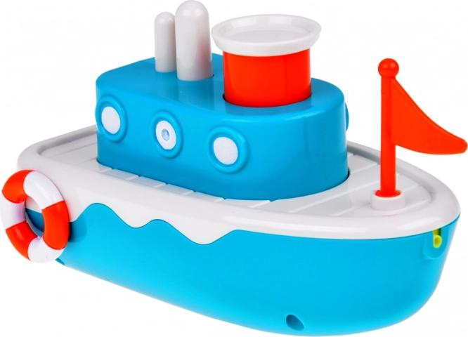 Schwimmendes Kinder-Badeschiff mit Springbrunnen für ein unterhaltsames Badeerlebnis in der Badewanne. Ideal zur Förderung von Fantasie und Spiel.