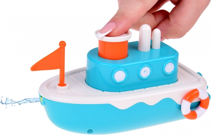 Dieses Kinderschiff bietet ein interaktives Erlebnis mit einem Knopf, der Wasser ausstößt, um den Badespaß zu erhöhen.