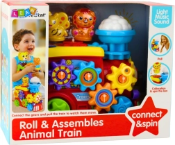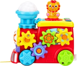 Interaktive Lokomotive ist so konzipiert, dass sie nicht nur unterhält, sondern auch die Feinmotorik, die visuell-motorische Koordination und die Neugier Ihres Kindes fördert. Die Lokomotive ist mit drehenden Zahnrädern ausgestattet, die das Kind in Bewegung setzen kann, was die Entwicklung präziser Handbewegungen unterstützt und grundlegende mechanische Zusammenhänge lehrt. Beim Drücken der Tasten werden Licht- und Toneffekte aktiviert, die den Hör- und Sehsinn des Kindes stimulieren.