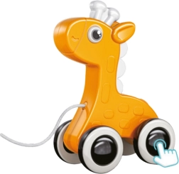 Die Zieh-Giraffe ist ein ideales Hilfsmittel für das Erlernen des Gehens und motiviert das Kind zur Bewegung und zum selbstständigen Spielen. Dank der praktischen Schnur kann das Kind die Giraffe überallhin mitnehmen und lernen, die Richtung und Geschwindigkeit der Bewegung zu steuern. Das Spielzeug hat in allen Rädern Quietscher, die zusätzliche akustische Reize bieten. Der Klang ist sanft und sicher für die Ohren des Kindes und erfordert keine Batterien, was das Spielzeug einfach und bequem für den täglichen Gebrauch macht.