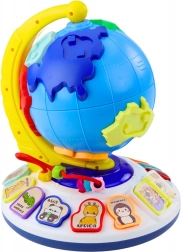 Der interaktive Globus hat auf seiner Oberfläche 7 farbige Blöcke, die die Kontinente mit Bildern freundlicher Tiere repräsentieren. Sobald ein Block an der richtigen Stelle platziert ist, hört das Kind den Namen des Kontinents, des Tieres und einen realistischen Klang, was eine ausgezeichnete Methode zum Erlernen von Geografie ist.