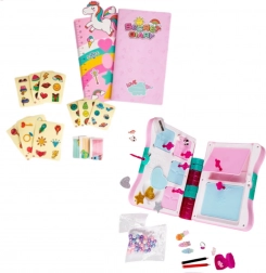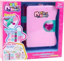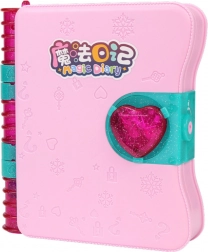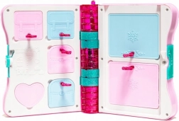 Das Tagebuch wird mit einem Schlüssel geöffnet, der in einer funkelnden Tube neben dem Tagebuch aufbewahrt wird. Der erste Schlüssel zum inneren Stauraum ist in einem Herz auf der Oberfläche versteckt. Neben dem Tagebuch und Notizbuch enthält es auch Zubehör zur Armbandherstellung – Perlen und Schnüre, sowie zwei Buntstifte und einen Anspitzer zum Aufschreiben von Geheimnissen. Im Inneren des Tagebuches finden Sie weitere Fächer, jedes mit einem eigenen Schlüssel.