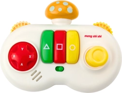 Dieses bunte interaktive Spielzeug ist in Form eines Controllers mit einer Oberseite im Schwamm-Design in Rot, Grün oder Gelb gestaltet und zieht so die Aufmerksamkeit der Kinder auf sich. Die Konsole ist mit bunten Knöpfen, Soundeffekten, drehbaren Rädern mit erhabener Textur und drei zentralen Tasten in Form eines Dreiecks, Quadrats und Kreises ausgestattet.