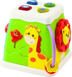 Das Spielzeug ist aus hochwertigen Materialien ohne scharfe Kanten gefertigt und bietet lebendige Farben, die die Aufmerksamkeit des Kindes auf sich ziehen. Dank der Licht-, Ton- und Bewegungselemente lernt das Kind, neue Funktionen zu entdecken und seine Fähigkeiten weiterzuentwickeln.