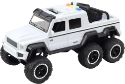 Das Modell hat 6 massive Räder mit profilierten Reifen, die seine Stabilität erhöhen und es ermöglichen, kleinere Hindernisse zu überwinden. Auf dem Dach befinden sich vier Tasten zur Aktivierung von Soundeffekten: Motorstartgeräusche, Hupe, Rückwärtsgang, Sirene und Fernbedienung. Außerdem hat es öffnende Türen, die das Maß an Interaktion und den Realismus des Spiels erhöhen.