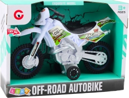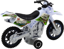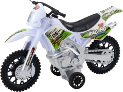 Dieses Motorcross-Modell besteht aus strapazierfähigem Kunststoff, der intensives Spiel aushält. Das weiß-grüne Design mit Rennaufklebern sieht sehr ansprechend aus. Große Offroad-Räder sorgen für Stabilität und eine bessere Simulation der Fahrt auf unebenem Gelände.