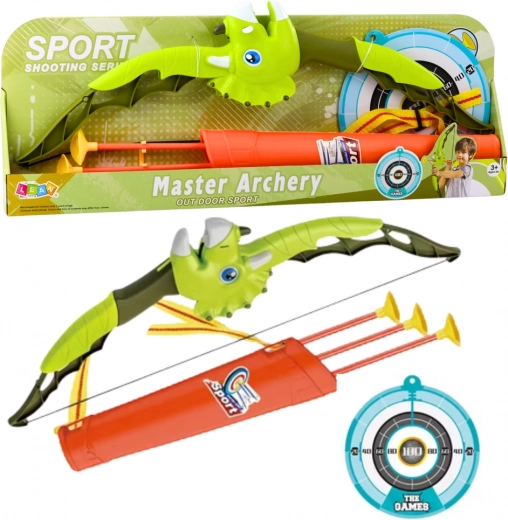 Grüner Bogen Dinosaurier mit Saugnapfpfeilen und Zielscheibe