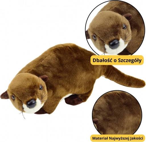 Der Otter eignet sich hervorragend als treuer Begleiter bei Kinderspielen sowie als dekoratives Element im Kinderzimmer – geeignet sowohl für natürliche als auch für märchenhafte Umgebungen. Er ist auch ein ausgezeichnetes Geschenk für ein Kind, das Tiere liebt, sich für die Natur interessiert oder einfach gerne weiche Plüschspielzeuge mag.