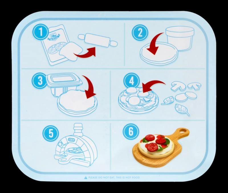 Enthalten ist auch eine einfache Bild-Rezeptkarte, die Kindern hilft, grundlegenden visuellen Anleitungen zu folgen. Dank des wiederverwendbaren Modelliermaterials können kleine Köchinnen und Köche immer neue Zutaten-Kombinationen ausprobieren und ihre Traumpizza kreieren.