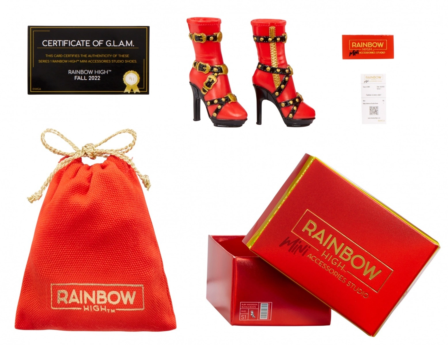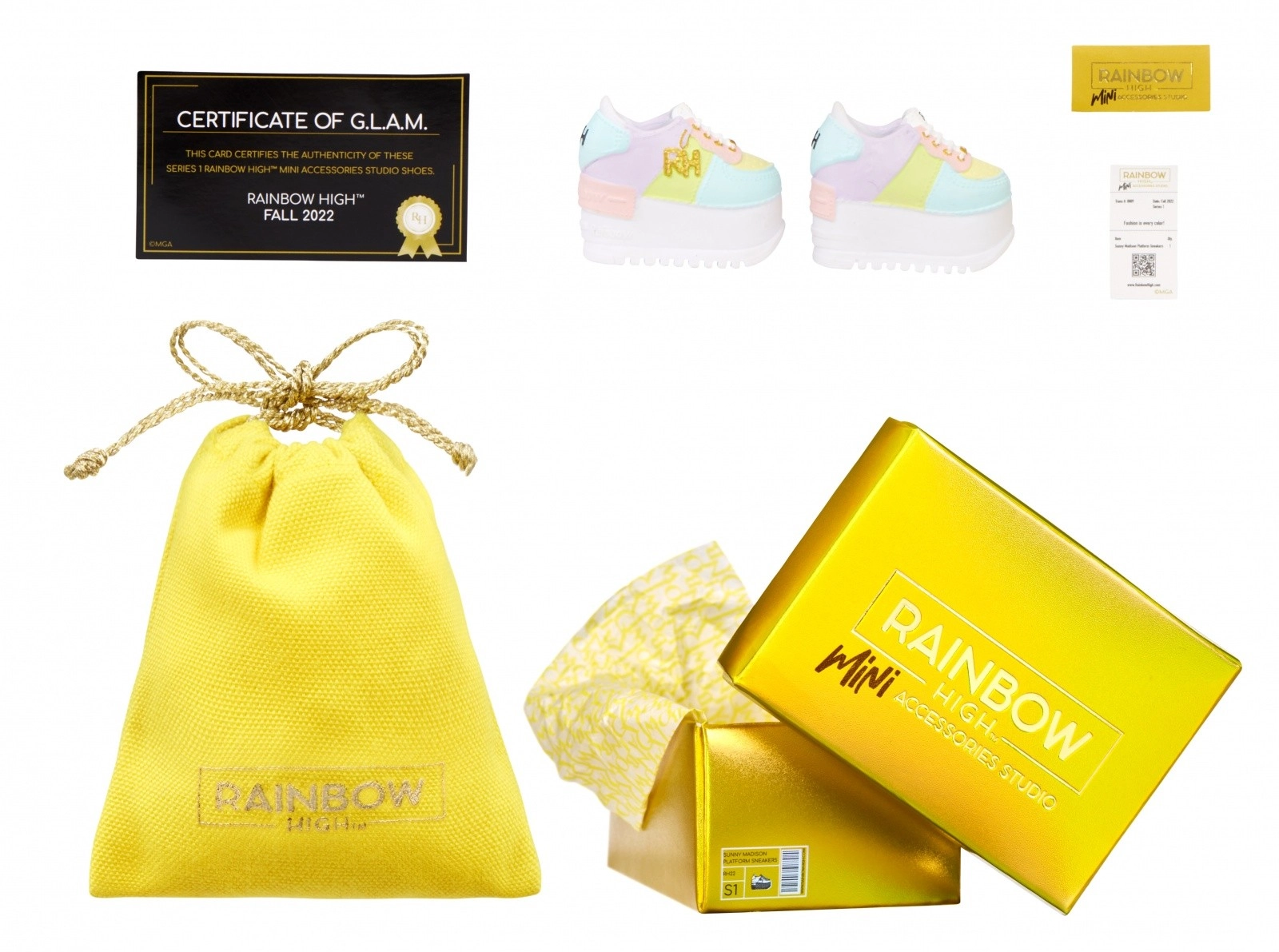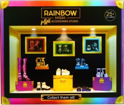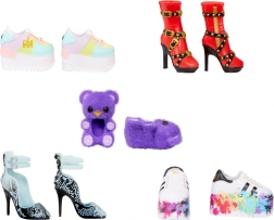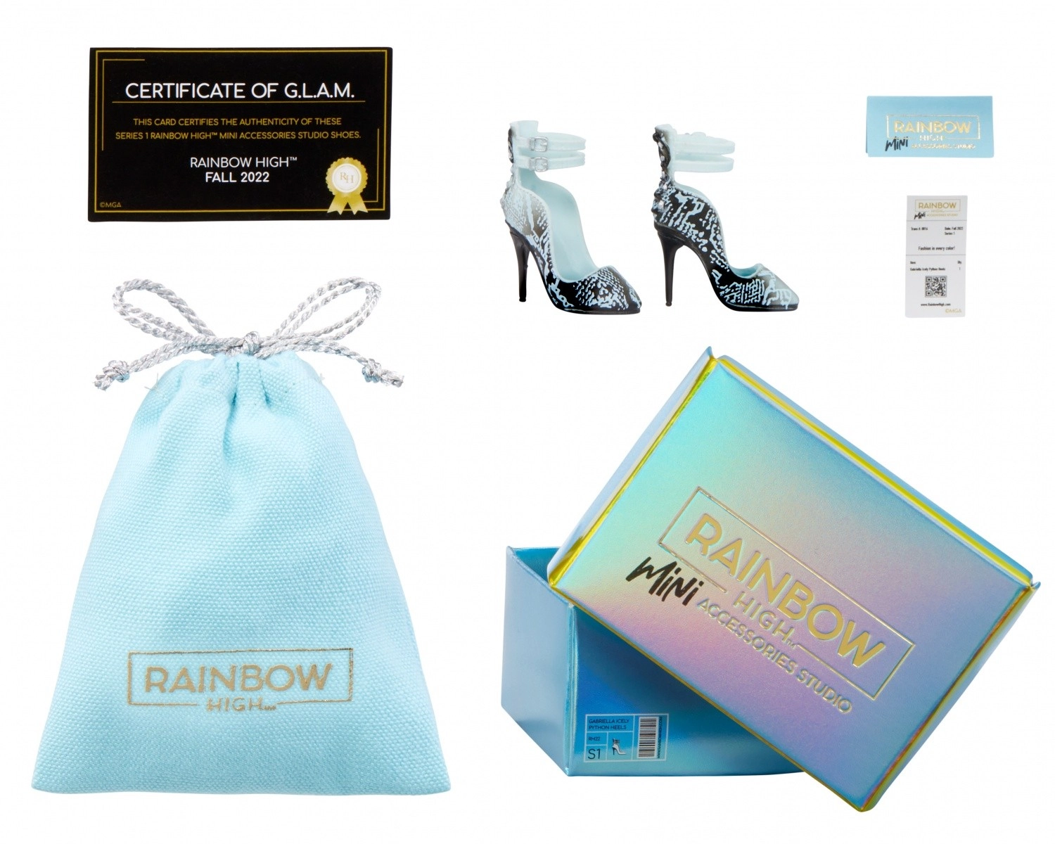 Entdecken Sie eine neue Dimension der Mode mit der Rainbow High Studio Serie 1-Kollektion. Dieses Set bietet beeindruckende Möglichkeiten für Ihre Rainbow High-Puppe mit 27 Schuhpaaren, darunter Sandalen, Turnschuhe, Flip-Flops, Stiefel und elegante Abendschuhe: