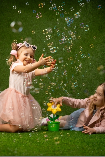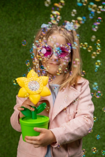 Diese Blumen-Seifenblasenmaschine macht aus jedem Garten-Nachmittag ein märchenhaftes Spektakel. Einfach die Lösung einfüllen, einschalten und im Handumdrehen entstehen Dutzende funkelnder Bläschen, die Kinder liebend gern fangen und jagen. Das kompakte Blumentopf-Design ist stabil und leicht zu transportieren.