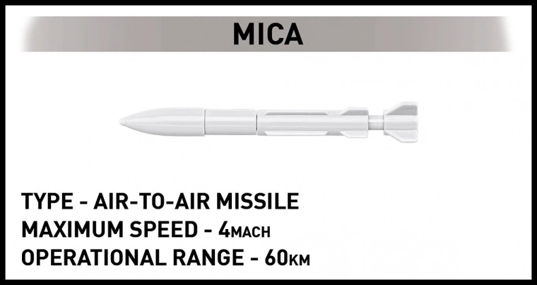 - Genauigkeit der Details - Vollständig originalgetreu dargestellte Details vom aerodynamischen Design bis zur montierten Ausrüstung, einschließlich der Raketen MICA und METEOR.