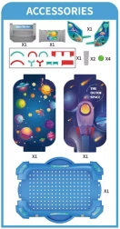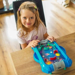 Das Modell ist ein DIY-Set – die Platte wird vom Kind einfach selbst zusammengesteckt, was Feinmotorik und Selbstständigkeit fördert. Zwei Varianten der Hindernis-Anordnung bringen bei jeder Runde neue Herausforderungen – ob alleine gespielt oder als Mini-Turnier mit Freundinnen und Freunden.
