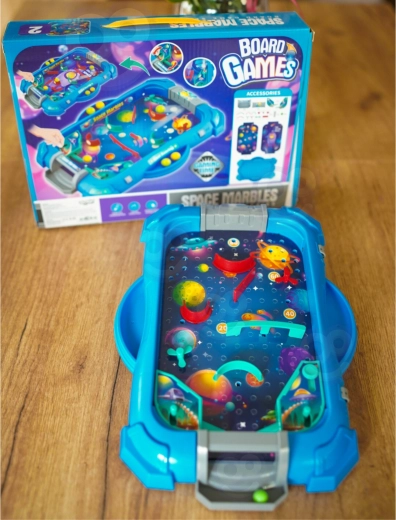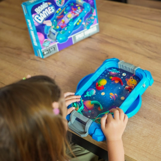 Entdecken Sie den Zauber des Flippers im kindgerechten Format. Dieses Tischspiel mit Weltraum-Motiv von WOOPIE erinnert an einen echten Flipper – mit Abschuss, Flipperhebeln und punktenden Zielen. Dank der einfachen Regeln steigen auch jüngere Kinder leicht ein und können Präzision, Reaktion und Planung trainieren.