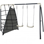 Die einzelnen Komponenten wurden mit Fokus auf Komfort und Sicherheit entworfen. Starke Bodenanker bieten Stabilität, selbst wenn die Kinder richtig in Fahrt kommen. Polypropylensitze sind leicht, widerstandsfähig und einfach zu reinigen. Die ergonomische Form und die richtige Tiefe des Kletternetzes gewährleisten Komfort und weitere Attraktionen beim Spielen.
