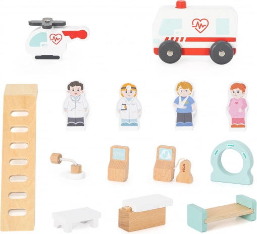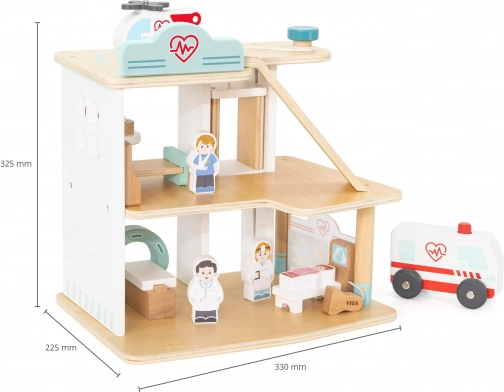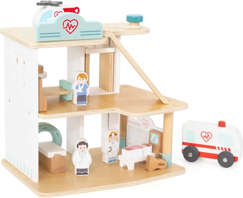 Holzkrankenhaus mit Krankenwagen und Aufzug 15 Stk Viga