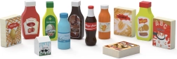 Das Set besteht aus 12 Lebensmittelartikeln aus hochwertigem Holz. Es ist ideal für Spiele, bei denen Kinder Erwachsene nachahmen können. Das Produkt hat keine scharfen Kanten und ist vollständig sicher für Kinder.