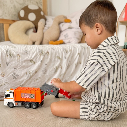 Interaktiver Müllwagen ist ein hervorragend verarbeitetes Modell eines städtischen Kommunalfahrzeugs, das jeden kleinen Liebhaber städtischer Fahrzeuge begeistern wird. Hergestellt aus strapazierfähigen Materialien und in einer charakteristischen orange-weißen Farbkombination, wird es zu einem Lieblingsstück in der Spielzeugsammlung Ihres Kindes.
