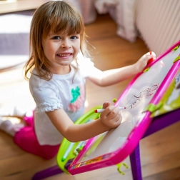 Die 3-in-1-Kindertafel ist das ideale Hilfsmittel zum Spielen und Lernen. Die magnetische Fläche eignet sich hervorragend für Spiele mit Magneten und das Legen von Buchstaben, die trocken abwischbare Seite ermöglicht Zeichnen und Schreiben mit Markern, und die spezielle fluoreszierende Seite erweckt dank LED-Markern leuchtende Bilder zum Leben. Ein Spielzeug, drei kreative Wege – ohne Chaos und immer wieder neu.