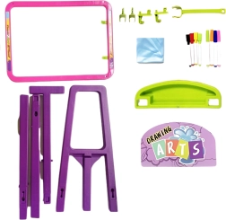 Leichte und stabile Konstruktion mit Ablagefach für Zubehör, damit alles griffbereit bleibt. Geeignet ab 3 Jahren und ideal zur Förderung von Kreativität, Hand-Auge-Koordination und Zusammenarbeit beim gemeinsamen Gestalten. Die fluoreszierende Funktion wird mit AAA-Batterien betrieben.