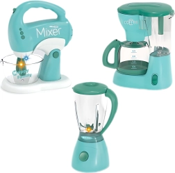 Das Set umfasst einen Mixer, Blender und eine Küchenmaschine. Alle Geräte sind mit Sound- und Lichteffekten ausgestattet, die das realistische Spielerlebnis verstärken. Rollenspiele helfen, die Vorstellungskraft und Kreativität der Kinder zu fördern.