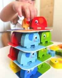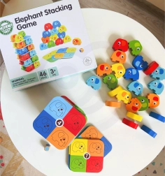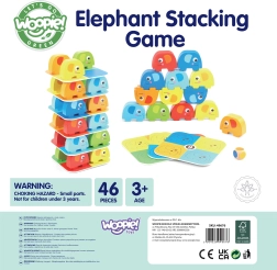 Erleben Sie Spaß und Abenteuer mit dem Spiel Elefanten-Spiel auf Elefanten von Woopie. Dieses Spiel enthält 46 Teile, einschließlich bunter Würfel und Spielkarten. Es ist ideal für gemeinsame Zeit mit der Familie. Lebendige Farben und niedliche Formen ziehen die Aufmerksamkeit auf sich und bieten zwei faszinierende Spielmöglichkeiten - als Bauspiel oder Jenga-Alternative.