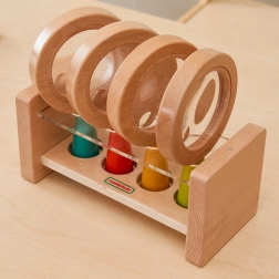 Wir präsentieren ein Holzlupenset, das speziell für Kinder entworfen wurde, um die Welt um sie herum sicher und lehrreich zu erkunden. Jede Lupe hat einen ergonomischen Holzgriff in leuchtenden Farben - Rot, Grün, Gelb und Blau, angepasst für kleine Hände.