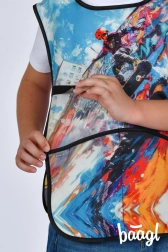 Suchen Sie zuverlässigen Schutz für die Kleidung kleiner Kreativer? Die Kinder-Schürze Skatepark ist die ideale Wahl für die Schule und Freizeitaktivitäten. Dank des robusten und leicht abwaschbaren Materials ist sie einfach sauber zu halten und hält auch intensiverem Basteln stand.