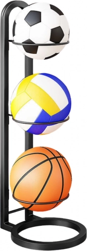 Praktischer und stilvoller Metallständer für 3 Bälle, ideal zur Ordnung in Ihrem Zuhause, Fitnessstudio oder in der Sporthalle.