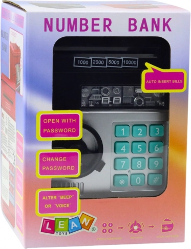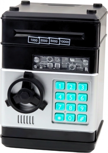 Die Spardose ist mit einem Mechanismus zum automatischen Einlegen von Banknoten und einem traditionellen Münzeinwurf an der Oberseite des Geräts ausgestattet. Diese Kombination ermöglicht das Sammeln von Ersparnissen in verschiedenen Formen, was das Produkt universell und funktional macht. Der Zugriff auf den Inhalt des Safes erfolgt nach Eingabe eines vierstelligen PIN-Codes – die Standardeinstellung ist 0000. Der Benutzer kann das Passwort jedoch jederzeit ändern, was das Gefühl von Privatsphäre und Kontrolle über seine Ersparnisse erhöht.
