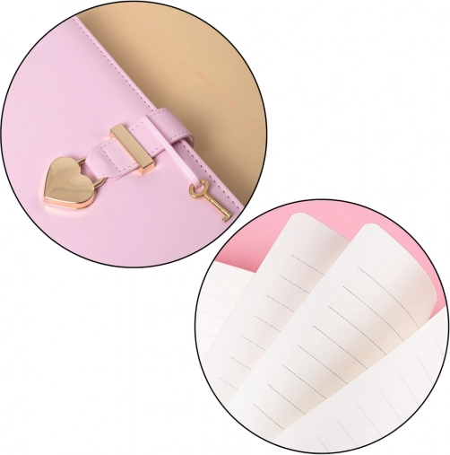Dank der goldenen Seitenkanten wirkt es auch im geschlossenen Zustand sehr stilvoll und elegant. Die linierten Seiten erleichtern eine ästhetische Führung der Einträge, während das Schloss in Herzform mit Schlüssel Privatsphäre garantiert.
