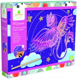 Entdecken Sie die zauberhafte Fantasiewelt mit dem Kratzbilder-Set DRACHEN. Einfach die schwarze Oberfläche geduldig abkratzen und darunter kommen nach und nach farbige und detailreiche Bilder zum Vorschein. Das Set ist ideal für Kinder ab 5 Jahren – das Basteln ist sicher, leicht und bringt ein schönes Ergebnis.
