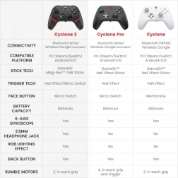 Erleben Sie präzise Steuerung und Spitzenleistung mit dem GameSir Cyclone 2 Controller. Er bietet Drei-Modi-Konnektivität (2,4 GHz, Bluetooth, Kabel), Mag-Res TMR-Sticks, analoge Hall-Effect-Trigger, 6-Achsen-Gyroskop, immersive Vibrationen und RGB-Beleuchtung für SWITCH, PC, Android und iOS.