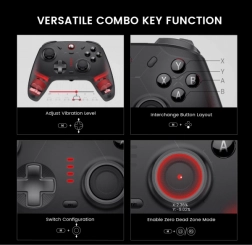 Dank der Drei-Modi-Konnektivität (2,4 GHz, Bluetooth, Kabel) wählen Sie mühelos die ideale Spielart mit minimaler Latenz. Das 6-Achsen-Gyroskop unterstützt Motion-Steuerung auf SWITCH, asymmetrische Vibrationsmotoren liefern realistisches Feedback und eSport-Fronttasten mit Mikroschaltern garantieren schnelle, sichere Klicks. Anpassbare RGB-Effekte und das schnelle Profilwechseln verleihen Ihrem Spielstil sowohl Ausdruck als auch Flexibilität.
