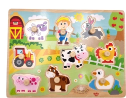 Dieses Holzpuzzle mit Knopfgriffen ist ein großartiger Helfer für erstes Lernen und selbstständiges Spielen. Jedes Teil passt exakt in die gefräste Aussparung der Platte, sodass das Kind spielerisch Logik, Geduld und das richtige Zuordnen von Formen trainiert. Die klaren Bauernhof-Illustrationen laden täglich zum Entdecken und Spaßhaben ein.