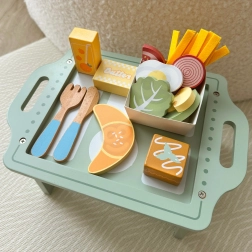 Woopie Green Frühstücksset mit Tablett und Holzzubehör ist mehr als nur ein Spielzeug – es ist eine Möglichkeit, Ihr Kind zu neuen kulinarischen Abenteuern zu inspirieren. Dank der realistisch aussehenden Holzelemente und des stilvollen Tabletts kann Ihr Kind voll ins Spiel eintauchen. Geeignet für Kinder ab 3 Jahren, enthält dieses Set bis zu 26 Elemente aus natürlichem Holz, was seine Haltbarkeit und Sicherheit gewährleistet.