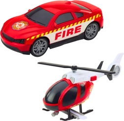 Das Feuerwehrset ist für Kinder geeignet, die Rettungsfahrzeuge lieben. Im Set enthalten ist ein großer Lastwagen, ein rotes Rettungsfahrzeug und ein Hubschrauber. Alle Teile haben eine charakteristische rot-gelbe Farbe und ein vom Feuerwehrkorps inspiriertes Design.