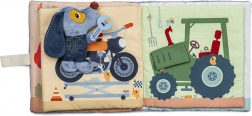 Erleben Sie die Welt des Hundes Jules in seiner Garage mit diesem interaktiven Textilbuch. Jede Seite bietet dem Kind neue Anreize zur Entwicklung seiner Fähigkeiten: