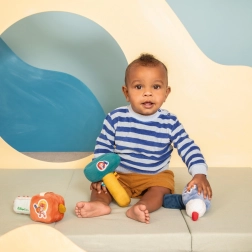 Das erste Spielzeug für kleine Handwerker! Diese Rassel in Form einer Motorsäge ist ideal für die Entwicklung der Sinne und zur Förderung der Fantasie bei Kindern ab 3 Monaten.