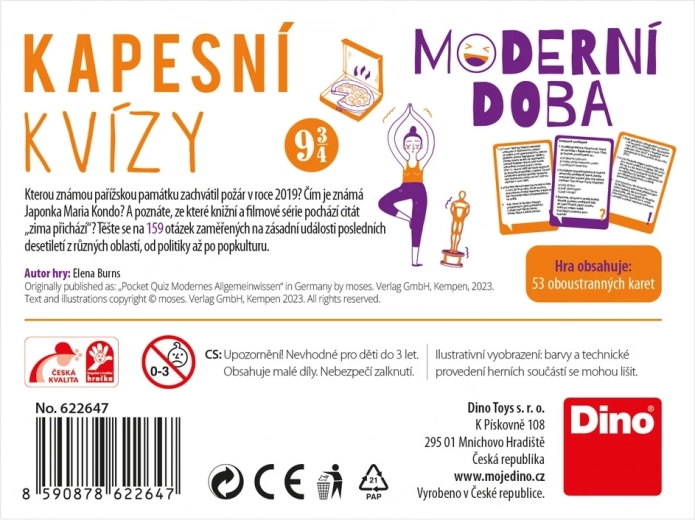 Taschen‑Quiz Moderne Zeit: 53 Karten, 159 Fragen auf Tschechisch. Schneller Spielspaß in 15 Minuten, für 1+ Spieler, ideal für unterwegs. Testen Sie Ihr Wissen über die Gegenwart!