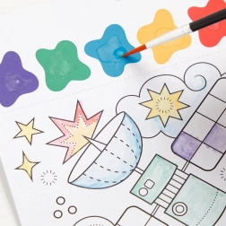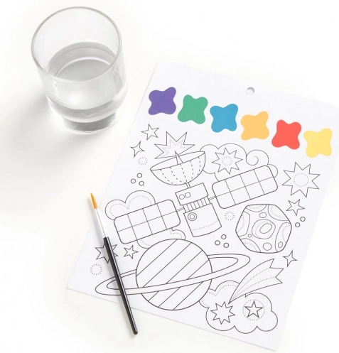 Geeignet für kleine Künstler, dieses Set fördert kreatives Denken, Motorik und Konzentration. Einfach den Pinsel befeuchten und die Himmelskörper auf den Blättern mit perforiertem Rand ausmalen, um das fertige Bild leicht abzutrennen. Entspricht allen aktuellen europäischen Sicherheitsnormen, was eine sichere Erfahrung für Kinder gewährleistet.